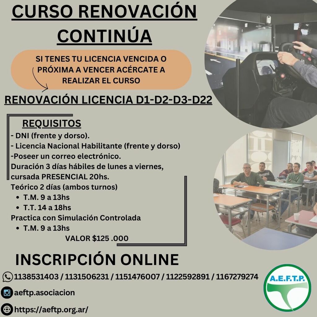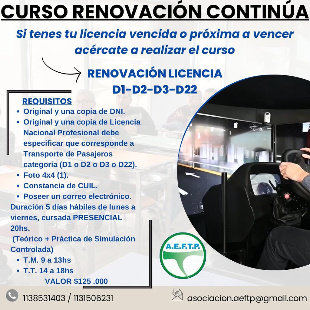 Si tu Licencia esta vencida o proxíma a vencer acércate a realizar el CURSO DE RENOVACIÓN DE LICENCIA D1-D2-D3-D22.
